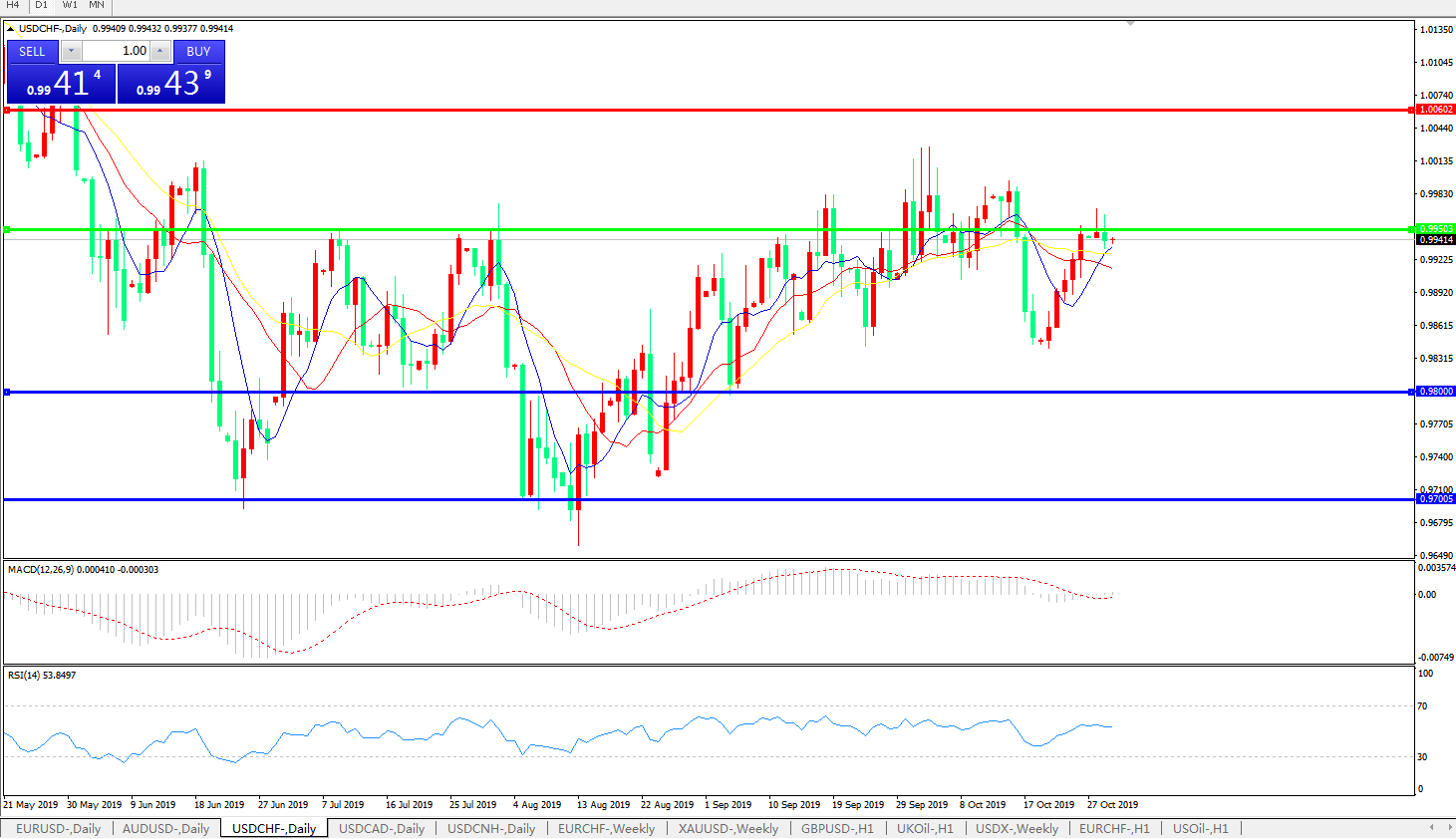 交易策略:0.9950下方看跌,目标0.98000.9700