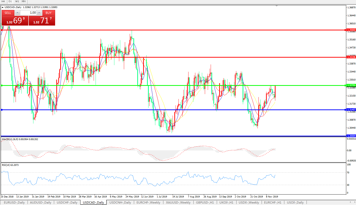 美元兑加元USDCAD    日线图: