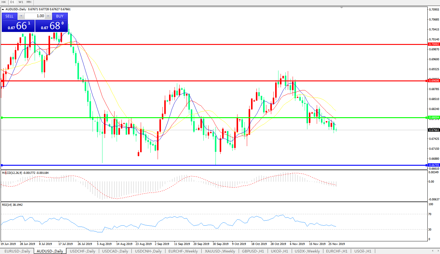 备选策略:0.6800上方看涨,目标0.6900、0.7000