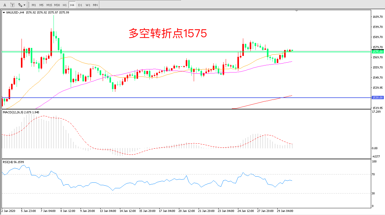 多空转折点:1575.00