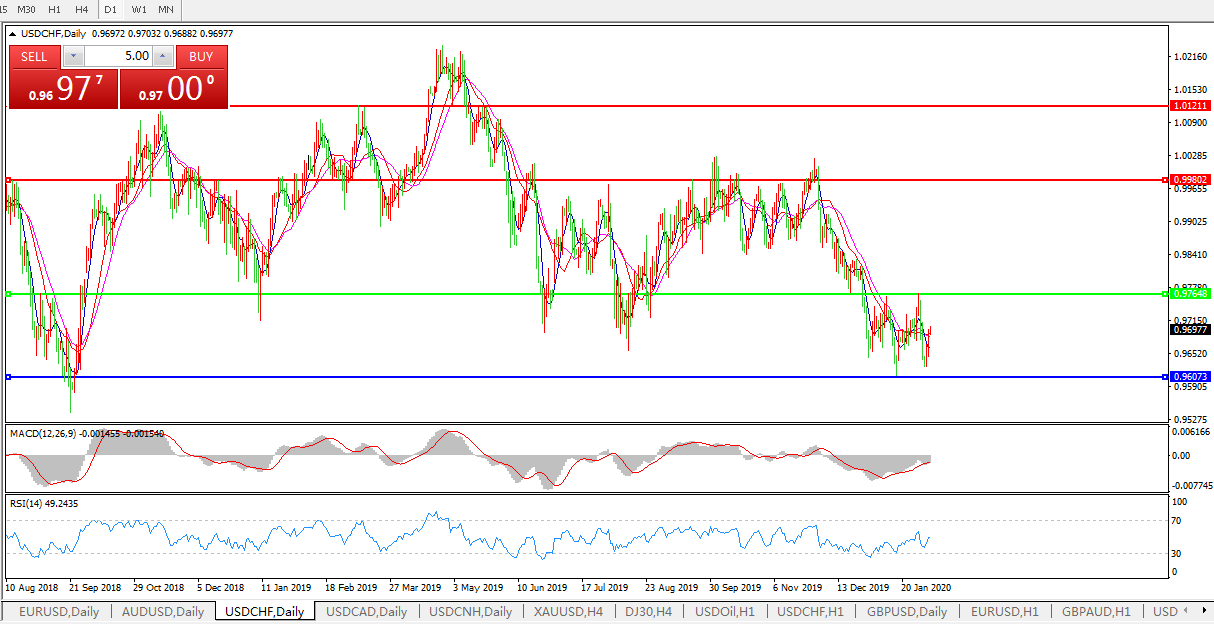 交易策略:0.9765下方看跌,目标0.9600、0.9550