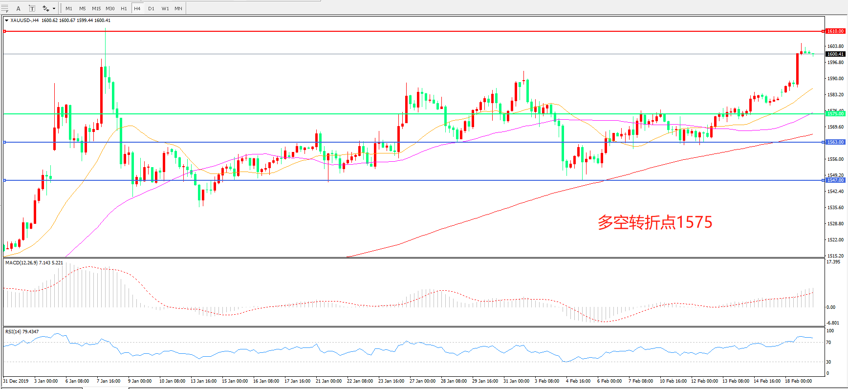 多空转折点:1575.00
