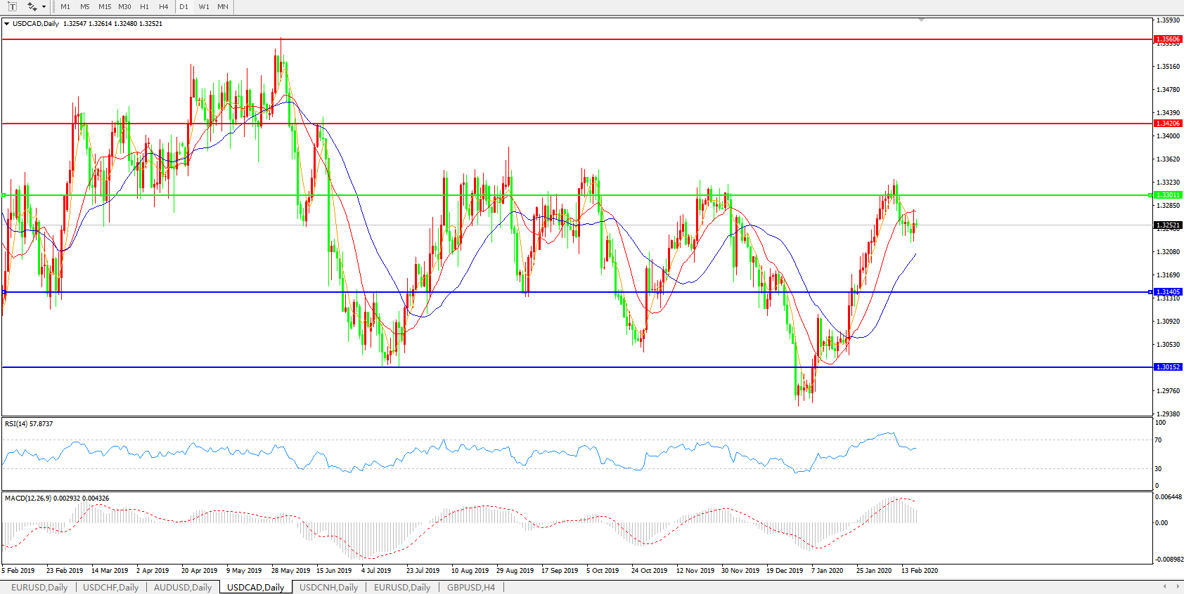 美元兑加元USDCAD 日线图: