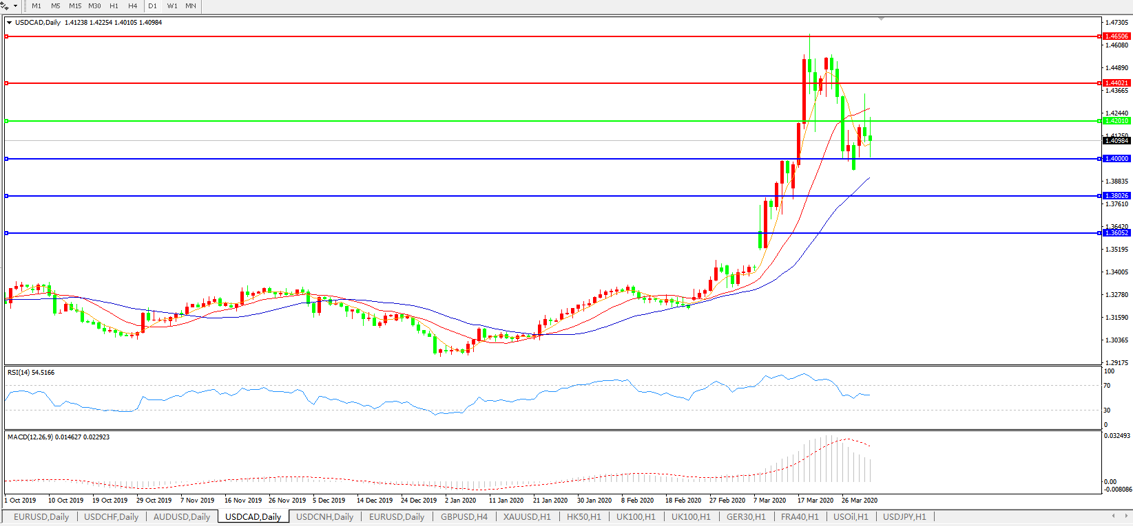 美元兑加元USDCAD 日线图: