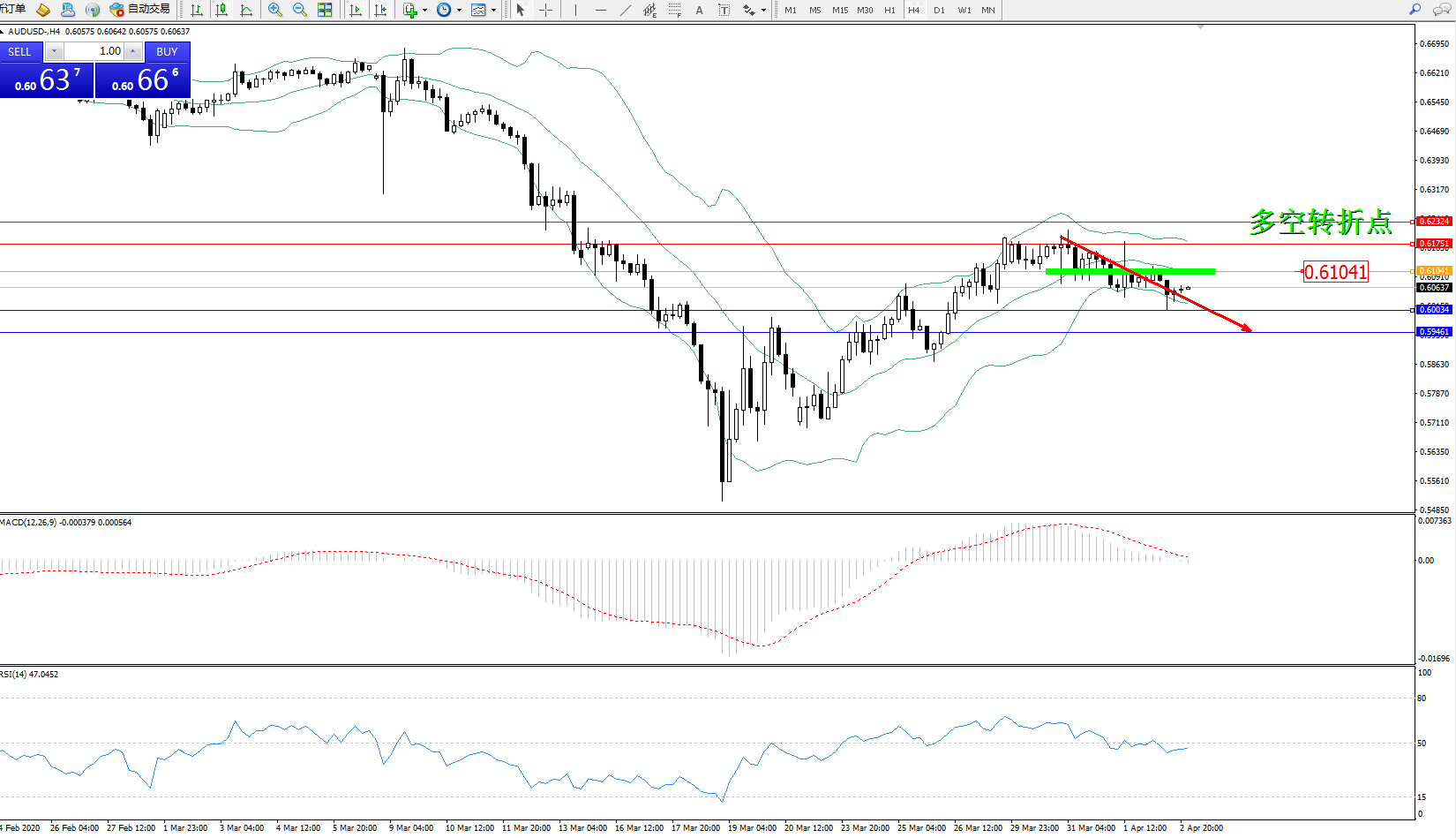 交易策略:0.61041下方看跌,目标0.600340.59461