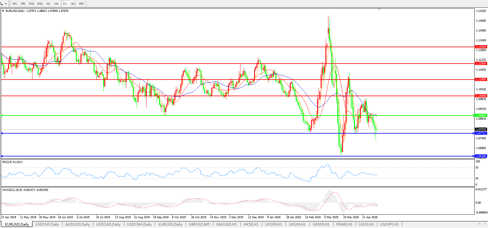 欧元兑美元EURUSD   日线图: