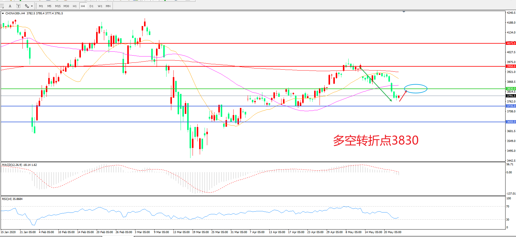 交易策略:在3830之下看跌,目标3735.00       3650.00