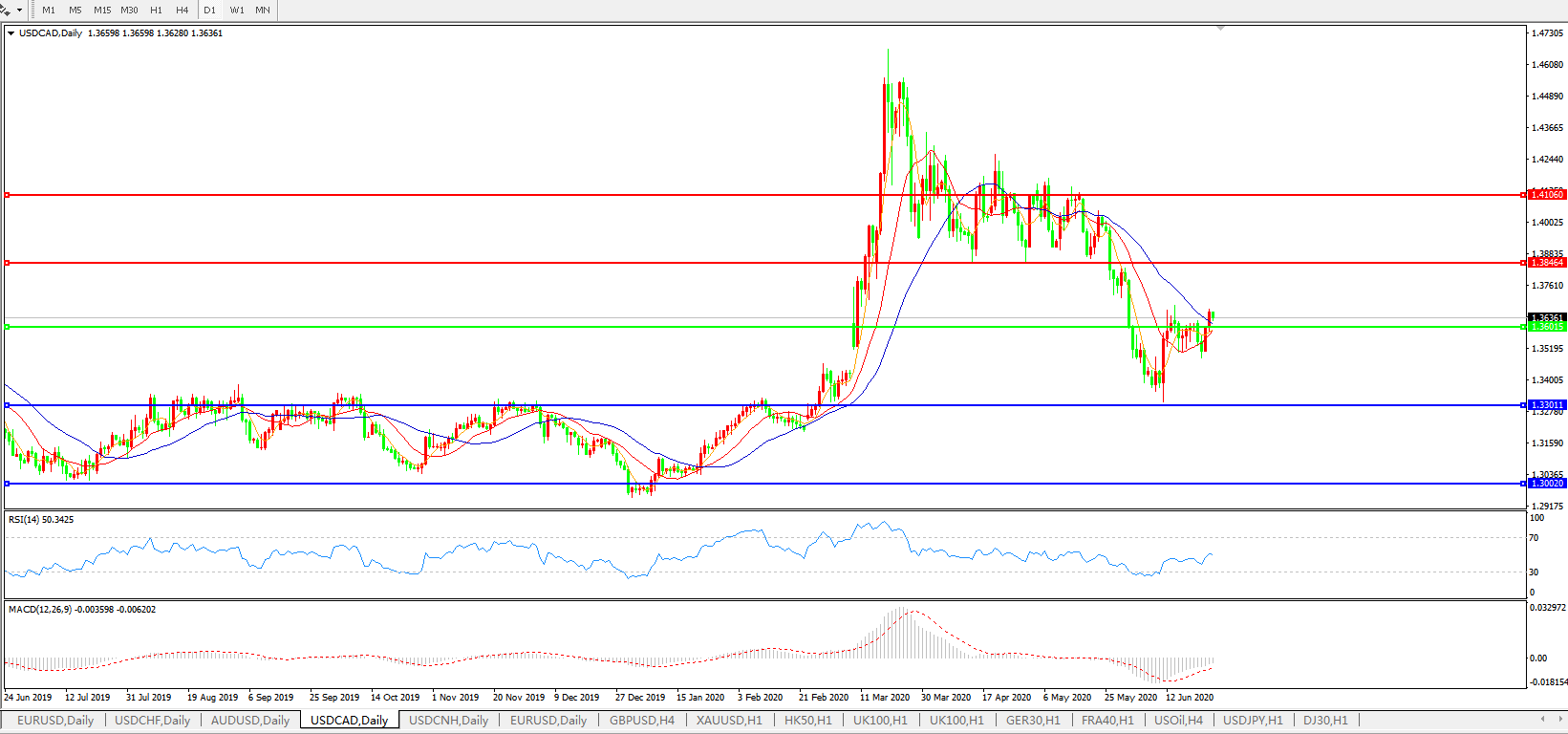美元兑加元USDCAD 日线图: