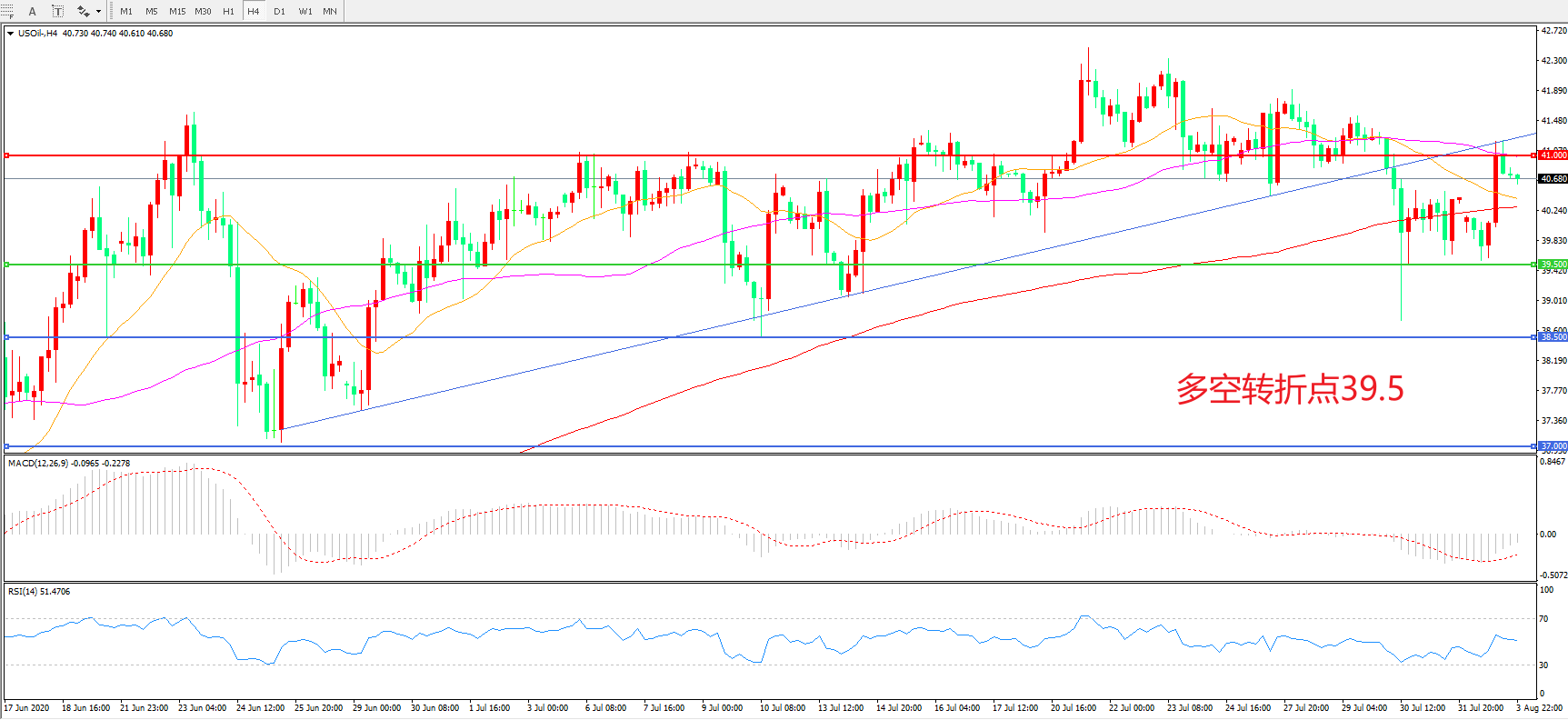 交易策略:在39.50之上看涨,目标41.00 43.50