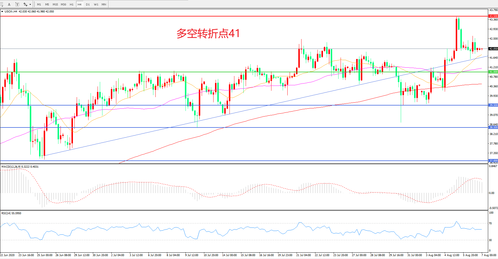 交易策略:在41.00之上看涨,目标43.50 46.00