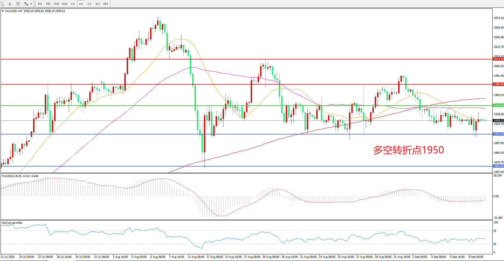 现货黄金XAU/USD 4小时图