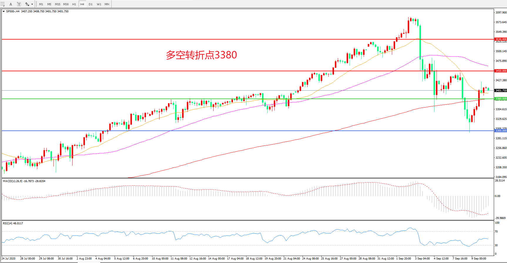 多空转折点:3380.00