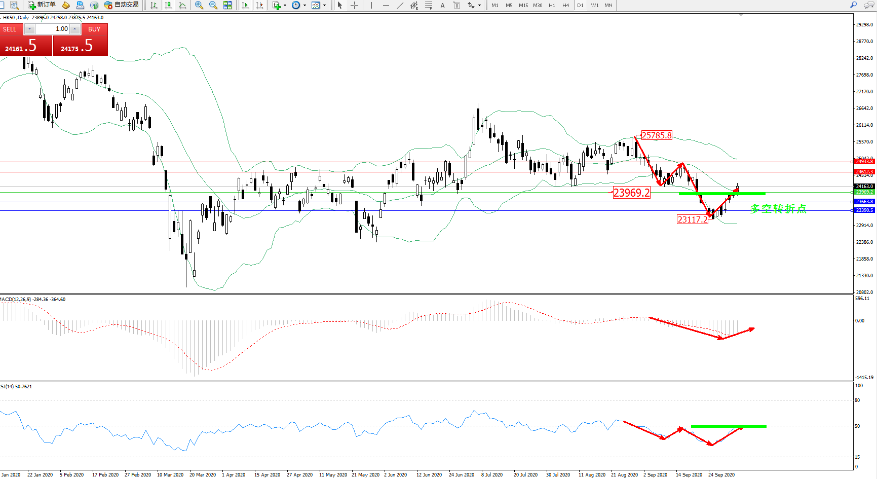 恒指HK50 ——日K线图显示: