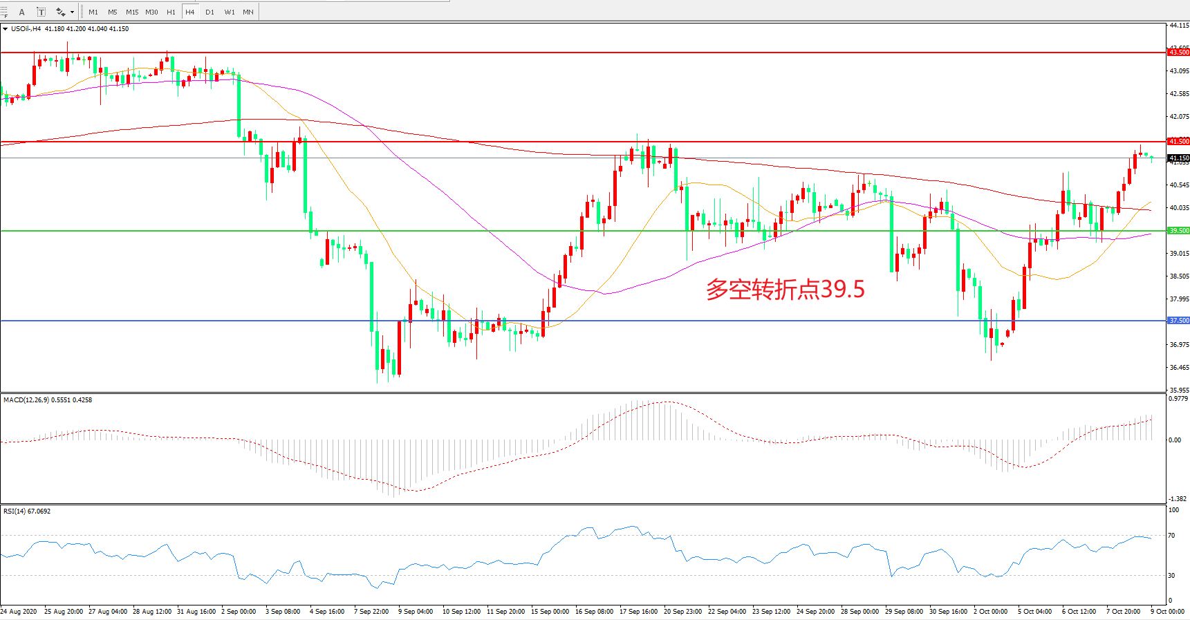 交易策略:在39.50之上看涨,目标41.50 43.50