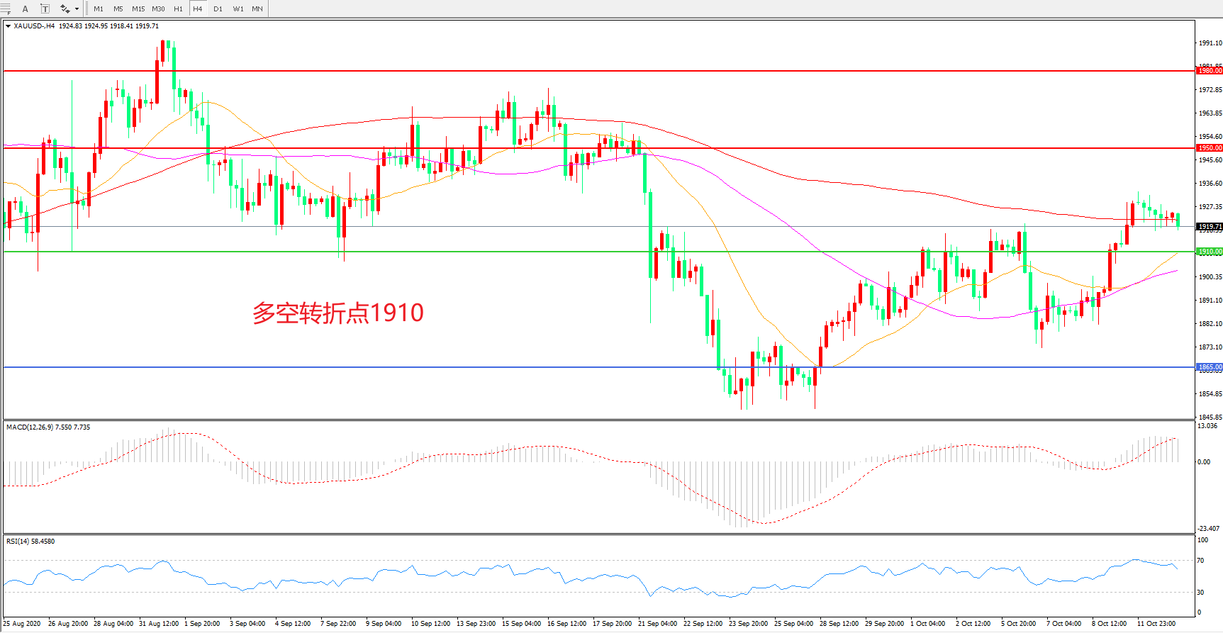 交易策略:在1910.00之上看涨,目标1950.00 1980.00