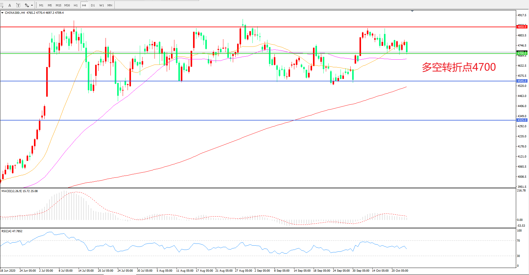 多空转折点:4700.00