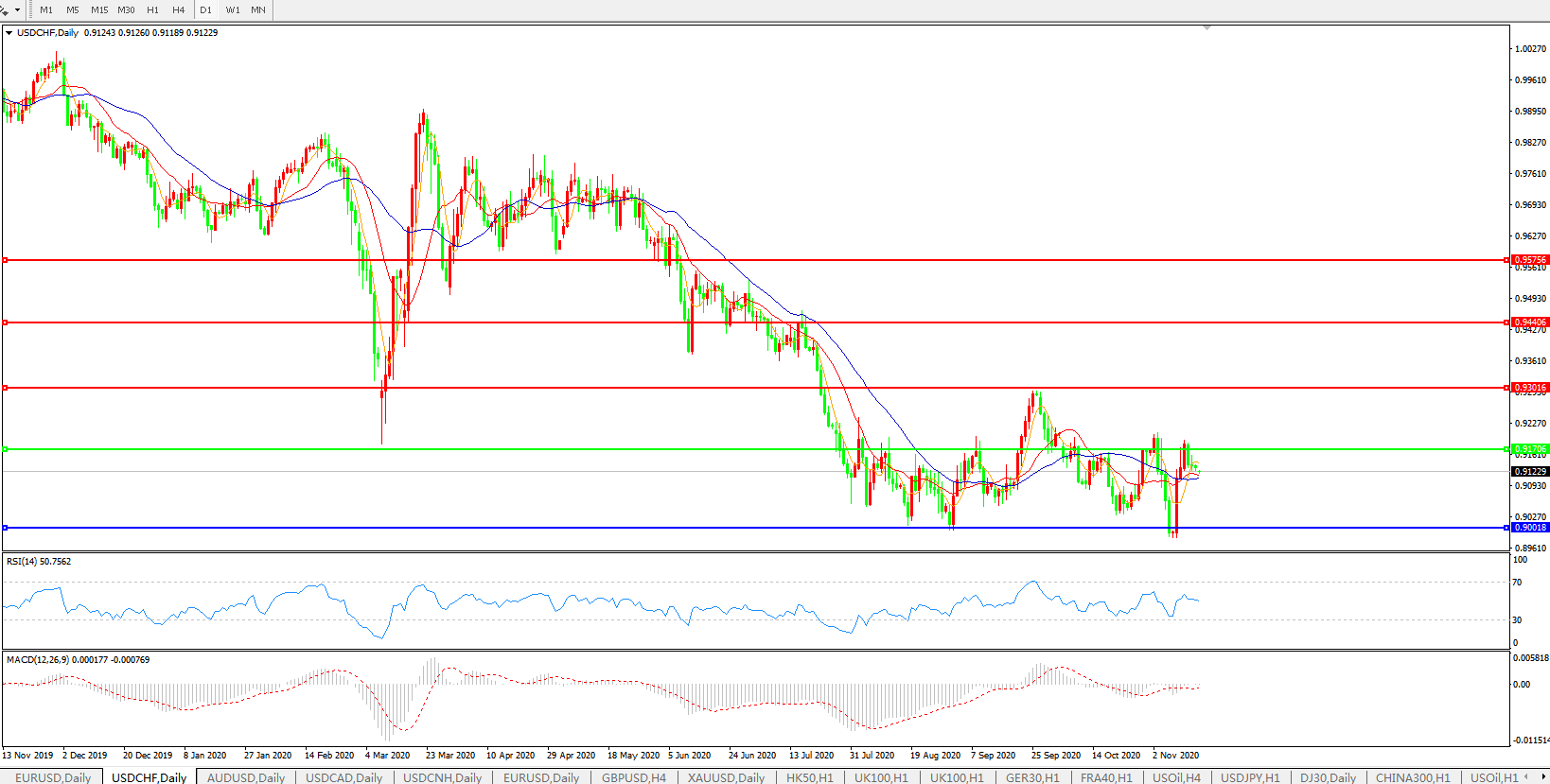 美元兑瑞郎USDCHF    日线图: