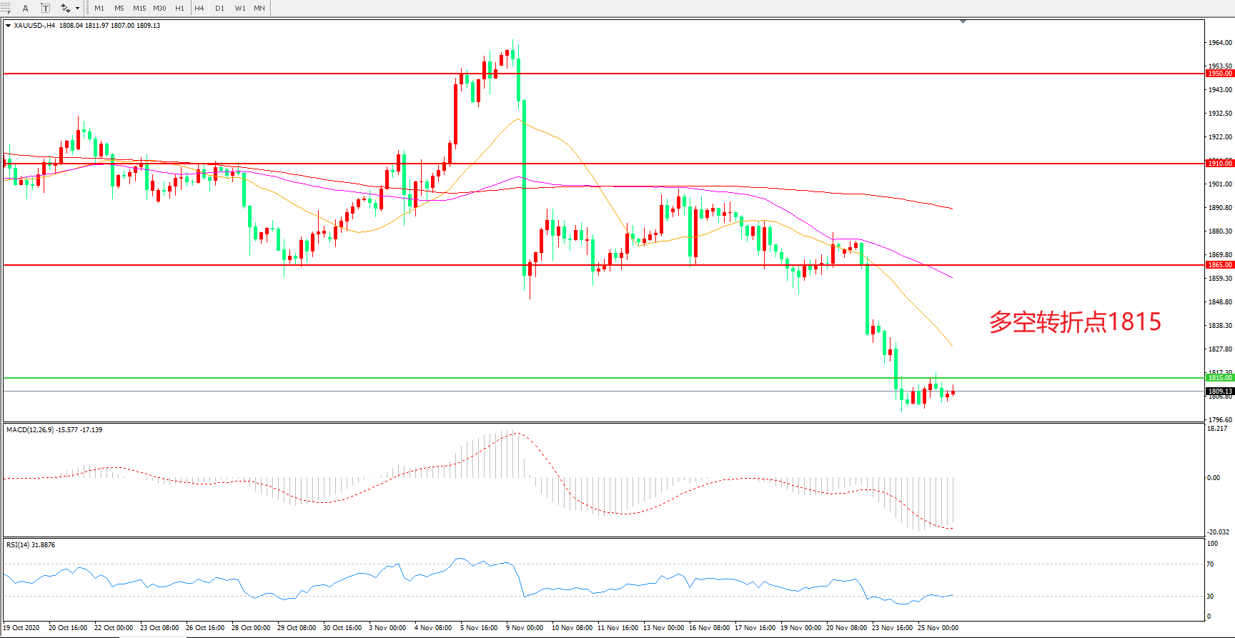 多空转折点:1815.00