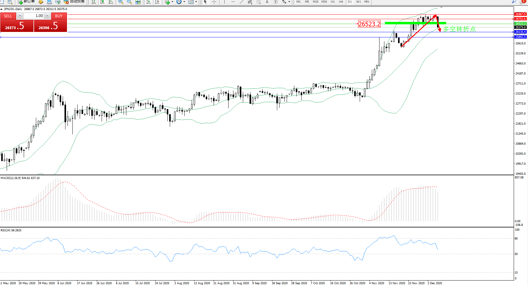 日经225指数12月7日(周一)收盘下跌194.24点,跌幅0.73%,报26557.00点。日本首相菅义伟:希望在明天决定进一步的经济措施。希望克服新冠疫情危机,振兴经济。进一步的经济措施包括贷款和更多的储备资金。计划也包括对企业提供现金流的帮助。日本最新民调结果显示,菅义伟政府的支持率为50.3%,与11月份相比大幅下降12.7%。仅有21.1的受访者认可菅义伟政府优先经济活动的抗疫政策。日本将推出总额为73.6万亿日元的经济刺激计划,以支撑遭受大流行打击的日本经济。该计划将包括约40万亿日元的财政措施。它将由第三份额外预算中的19.2万亿日元提供部分资金。40万亿日元财政措施的细目如下:约5.9万亿日元用于病毒控制措施、约18.4万亿日元用于支持后疫情经济的结构改革、约5.6万亿日元用于灾害管理和减少措施、约5万亿日元来自2020财年的储备资金、5万亿日元来自2021财年的储备资金。共同通信社5日和6日进行的电话民调显示,76.2%的受访者认为政府应该致力于控制疫情,而不是优先经济活动。菅义伟政府支持率下降12.7%,为自2017年6月以来首次降幅超过10%,不支持率上升13.6%,为32.8%。日本东京新增新冠肺炎确诊病例299例。