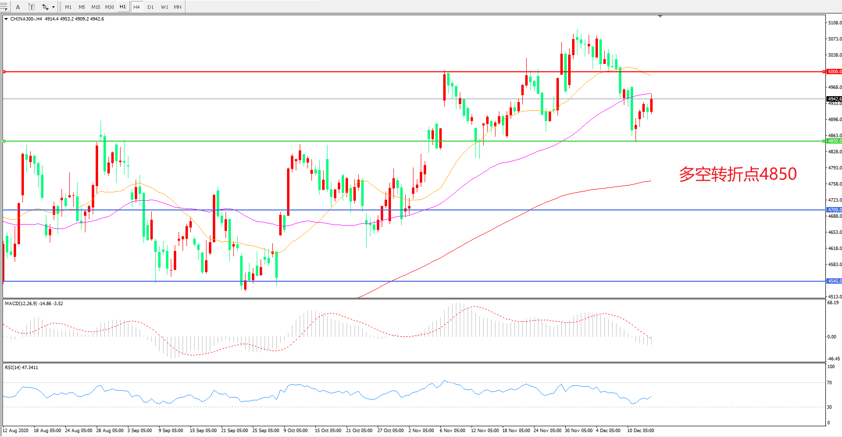 多空转折点:4850.00