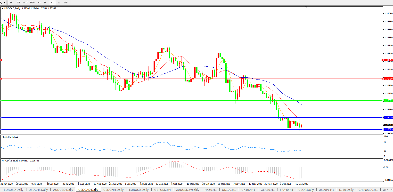 美元兑加元USDCAD    日线图: