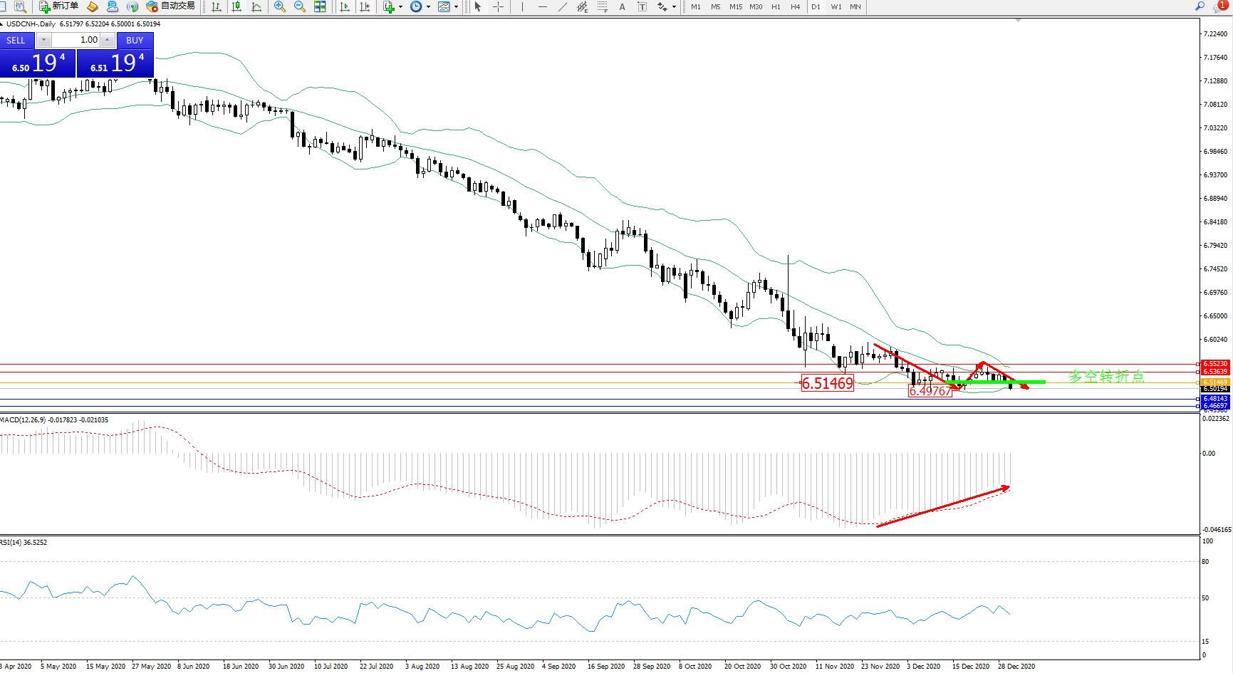 备选策略:6.51469上方看涨,目标6.53639、6.55230