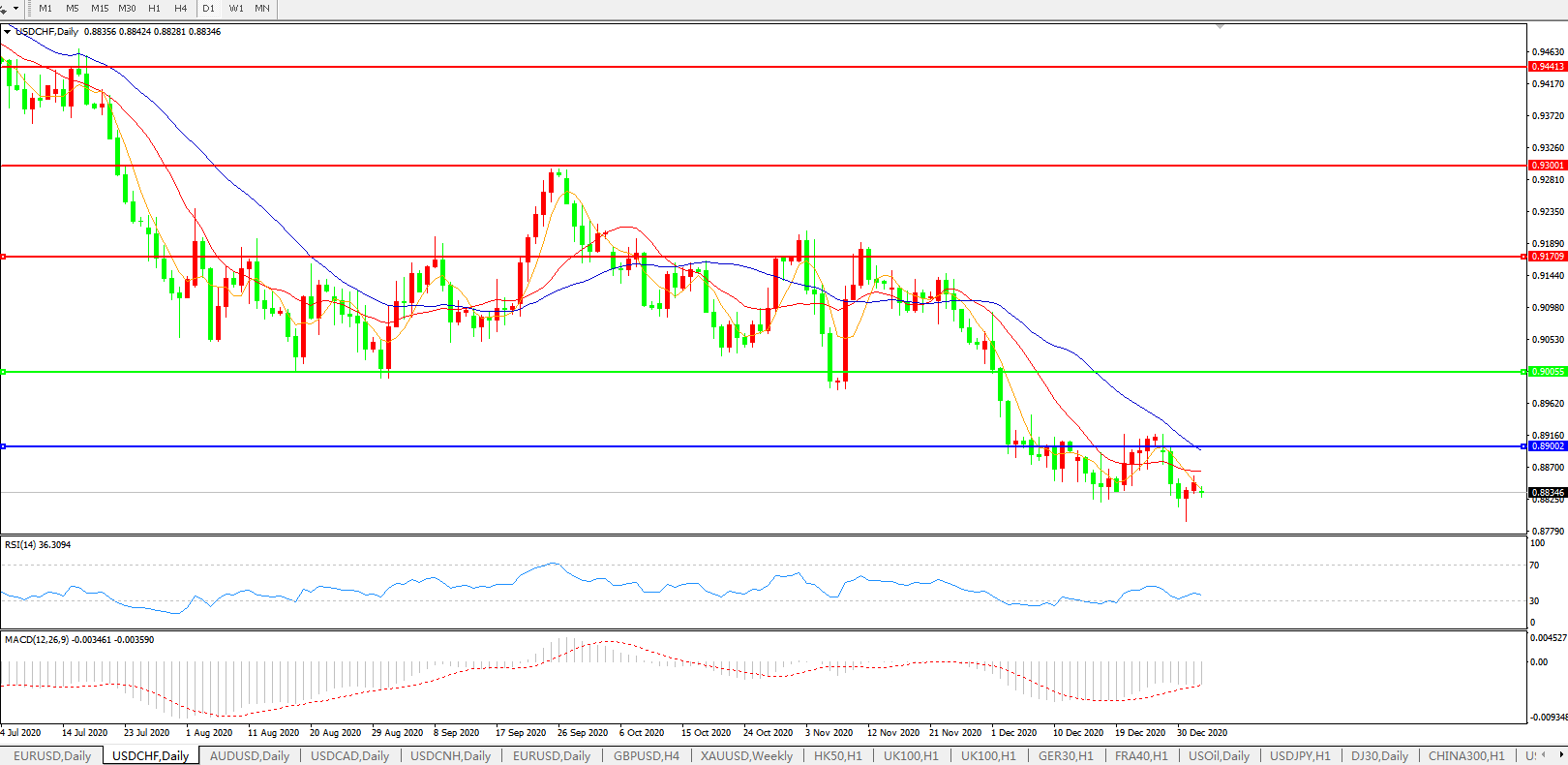 美元兑瑞郎USDCHF    日线图: