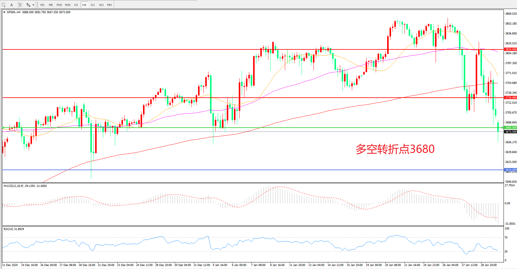 多空转折点:3680.00