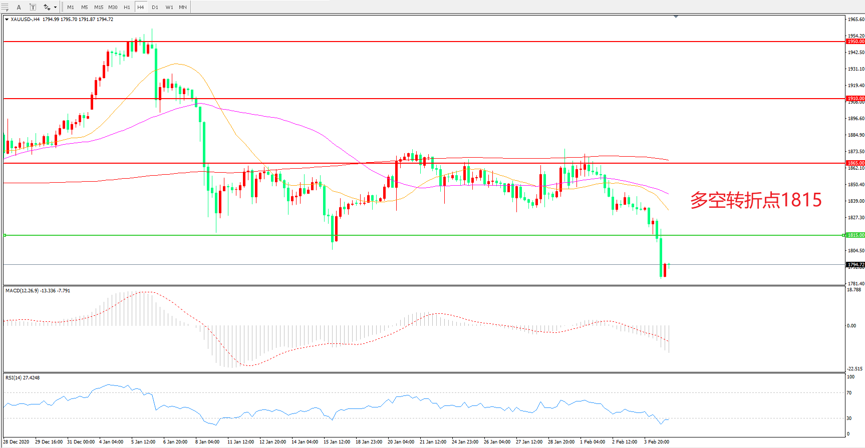 交易策略:在1815.00之下看跌,目标1765.00 1710.00