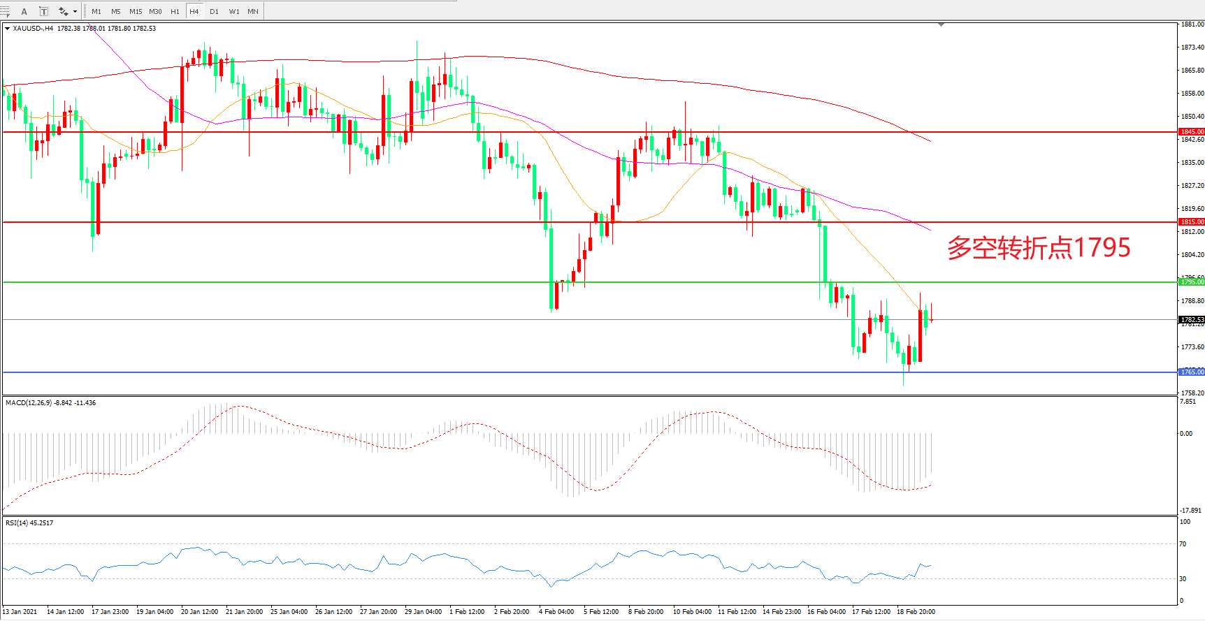 交易策略:在1795.00之下看跌,目标1815.00    1845.00