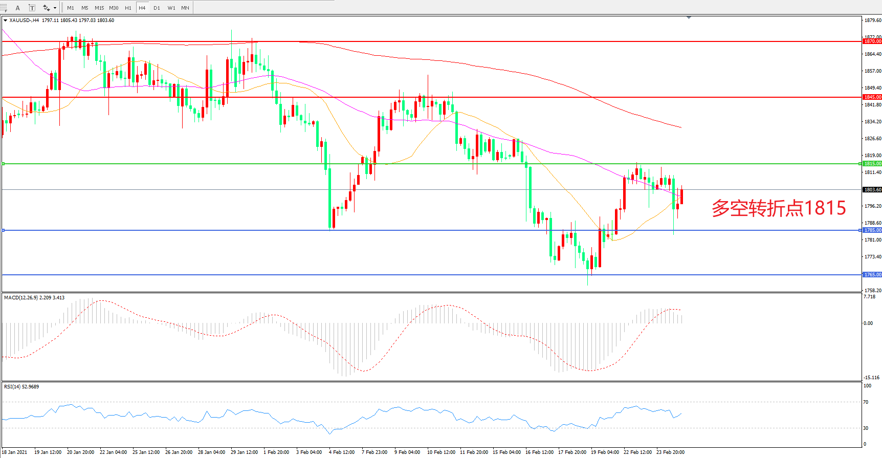多空转折点:1815.00