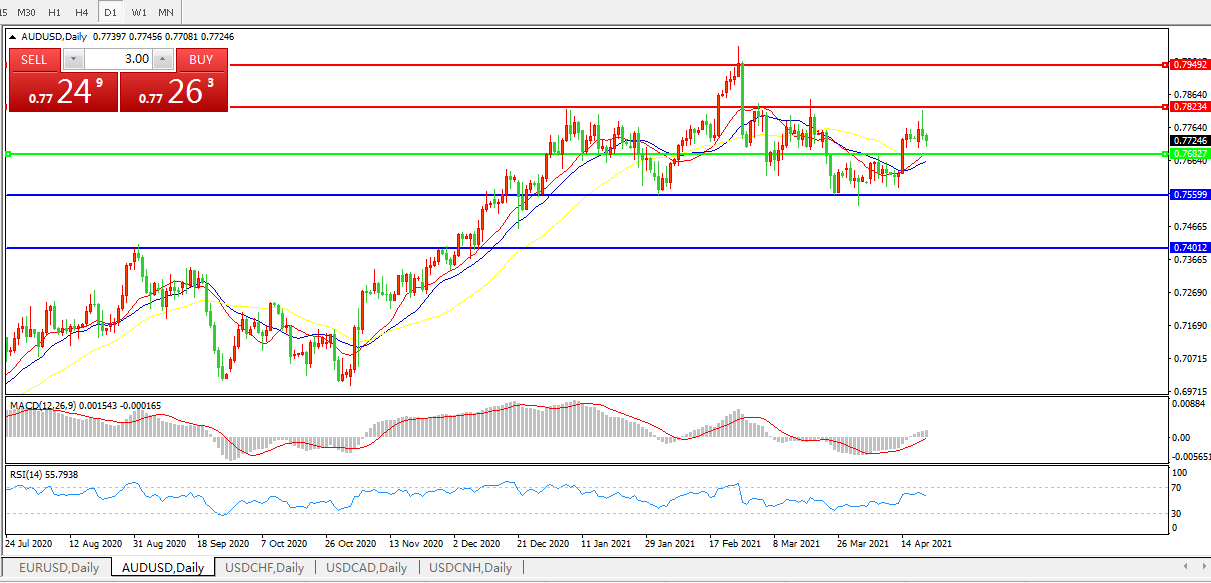 交易策略:0.7680上方看涨,目标0.7800、0.7900