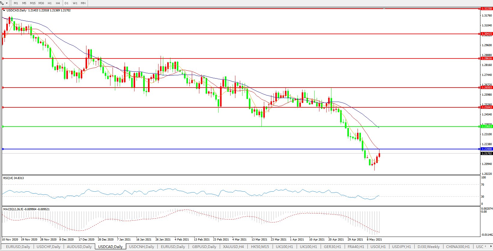美元兑加元USDCAD    日线图: