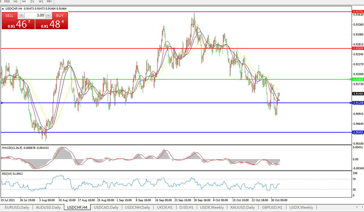 交易策略:0.9180下方看跌,目标0.9120、0.9040