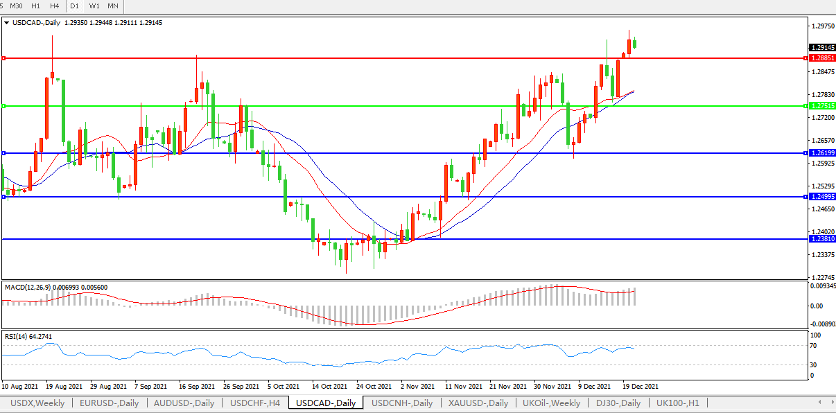 美元兑加元USDCAD 日线图: