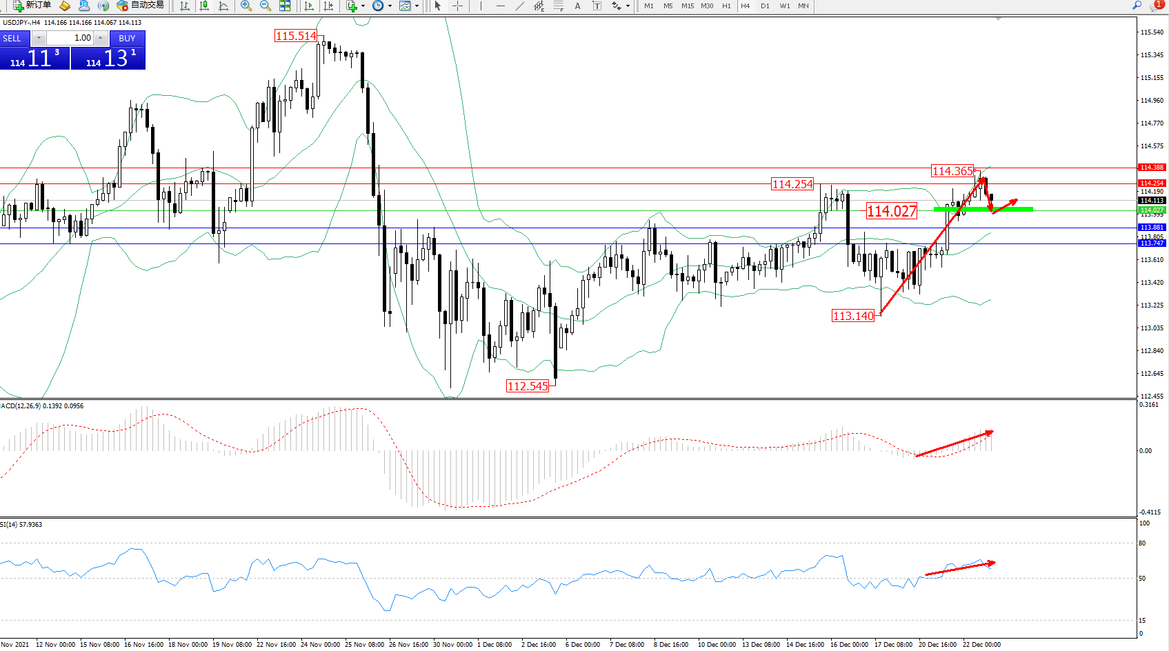 交易策略:114.027上方看涨,目标114.254、114.388