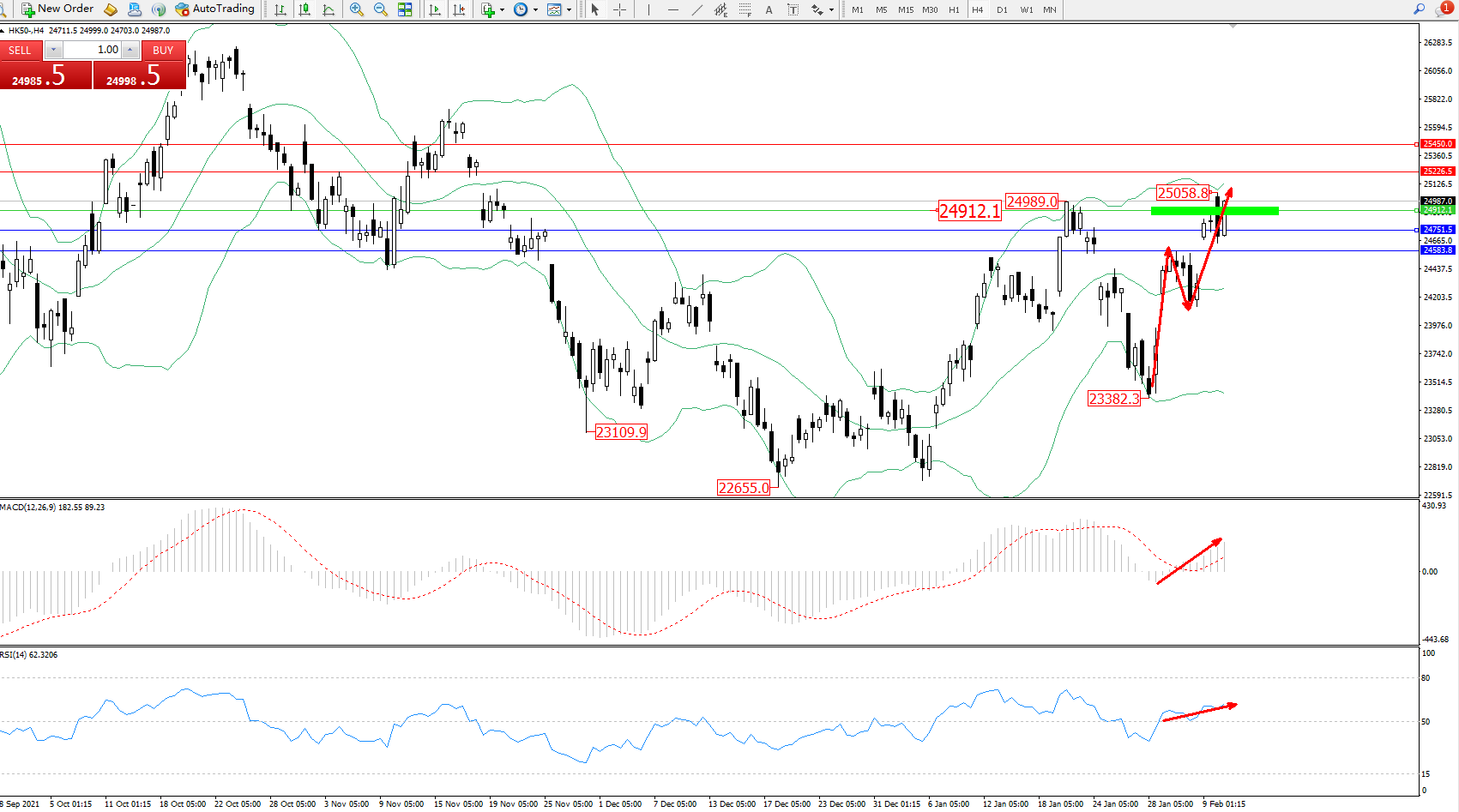 恒指HK50 ——4小时K线图显示: