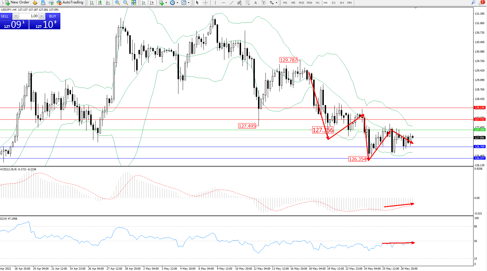 交易策略:127.356下方看跌,目标126.769、126.377
