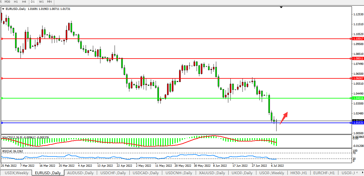 欧元兑美元本周大幅下跌至二十年低位,投资者押注欧元兑美元将继续下跌。过去几个月来,欧洲央行一方面期望通过加息遏制通胀,另一方面又担心加息导致一些南欧国家债务压力加大,瞻前顾后,行动迟缓,使得欧央行的紧缩步伐远落后于美联储,令欧元持续承压。