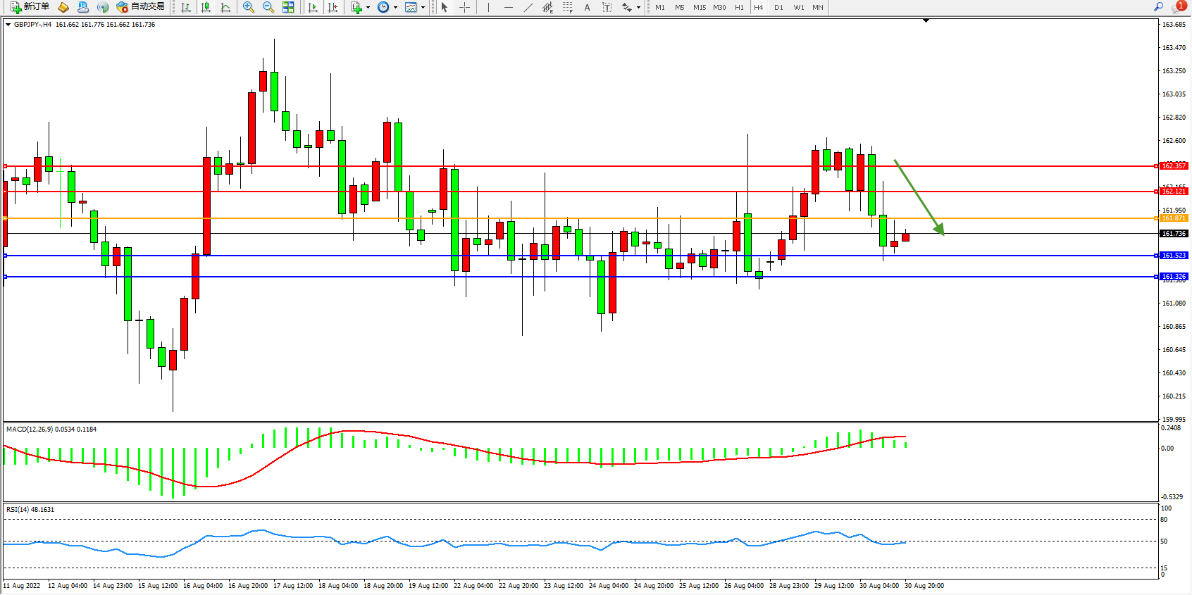 交易策略:161.871下方看跌,目标161.523、161.326