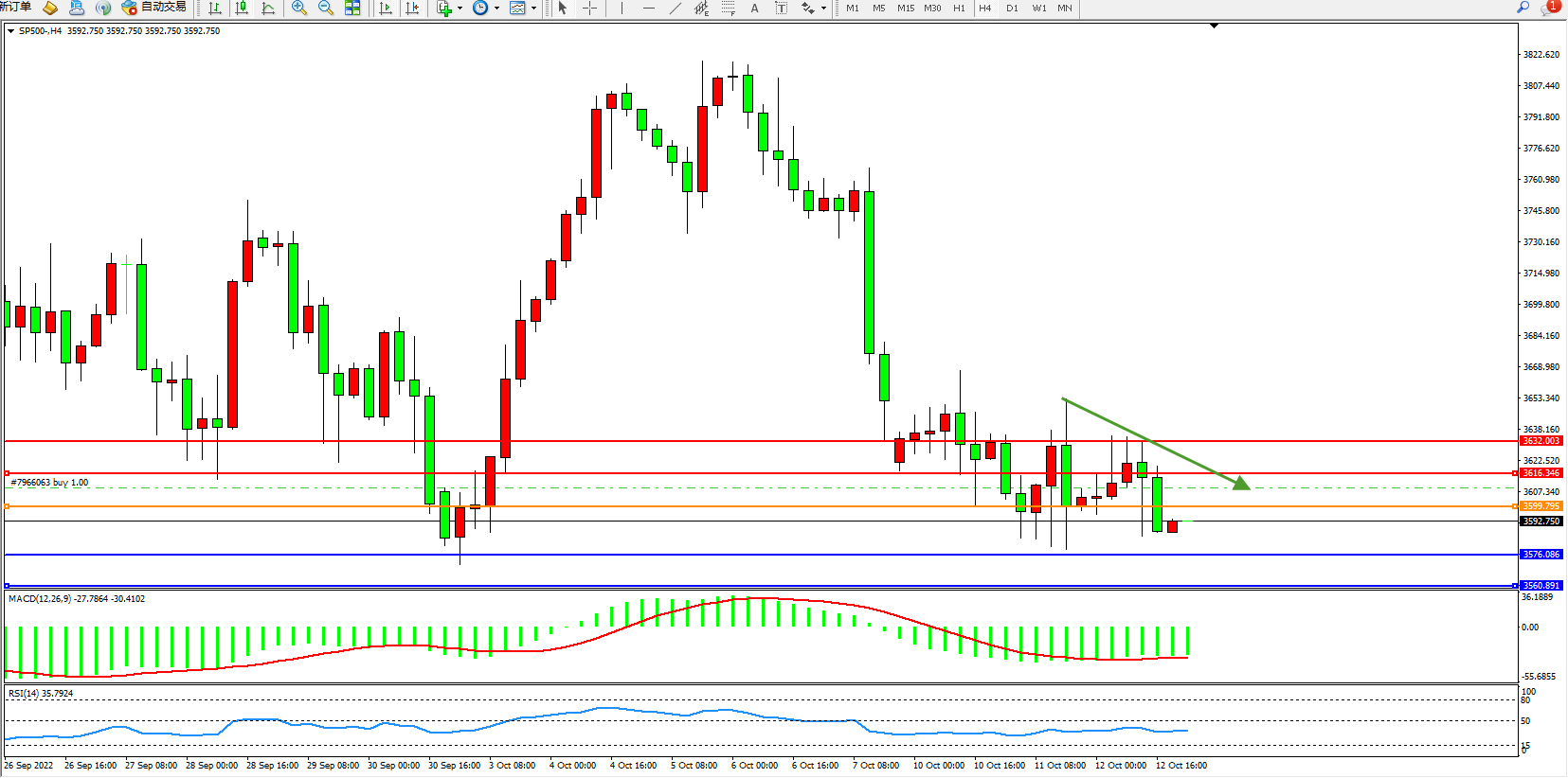 交易策略:3599下方看跌,目标3576、3560