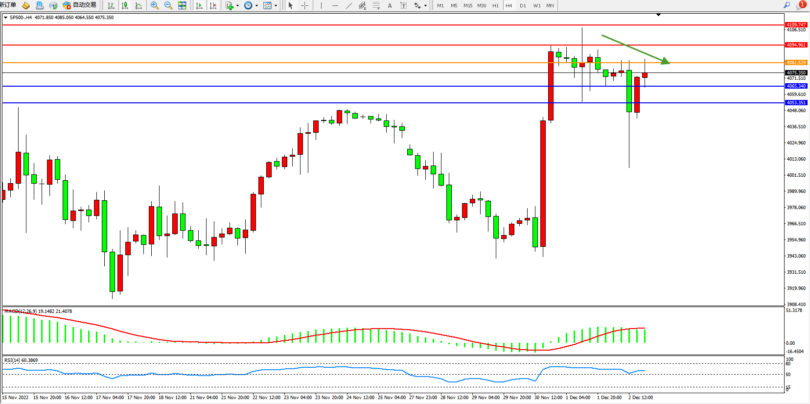 标普SP500——4小时K线图显示: