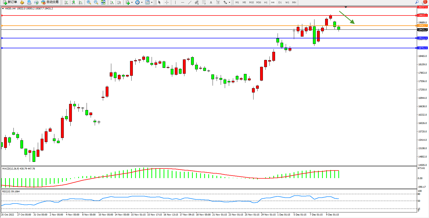 恒指HK50 4小时图