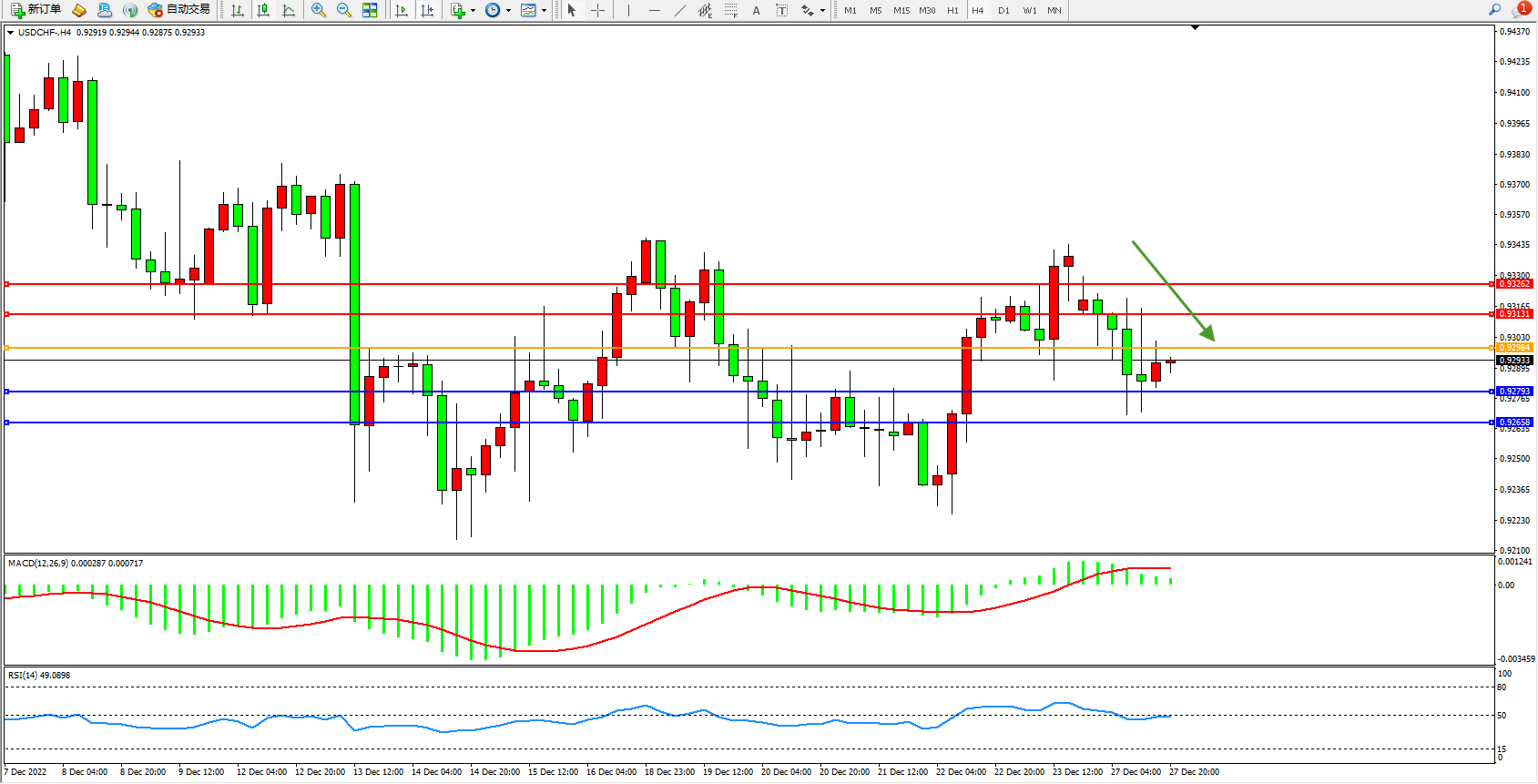 美元瑞郎USDCHF——4小时K线图显示: