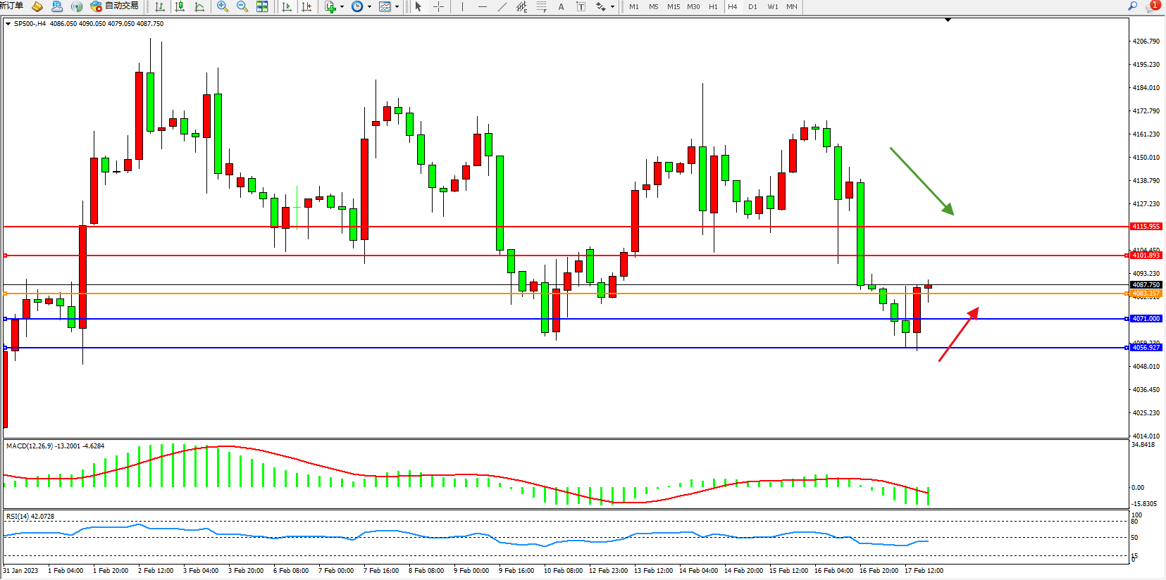 标普SP500——4小时K线图显示: