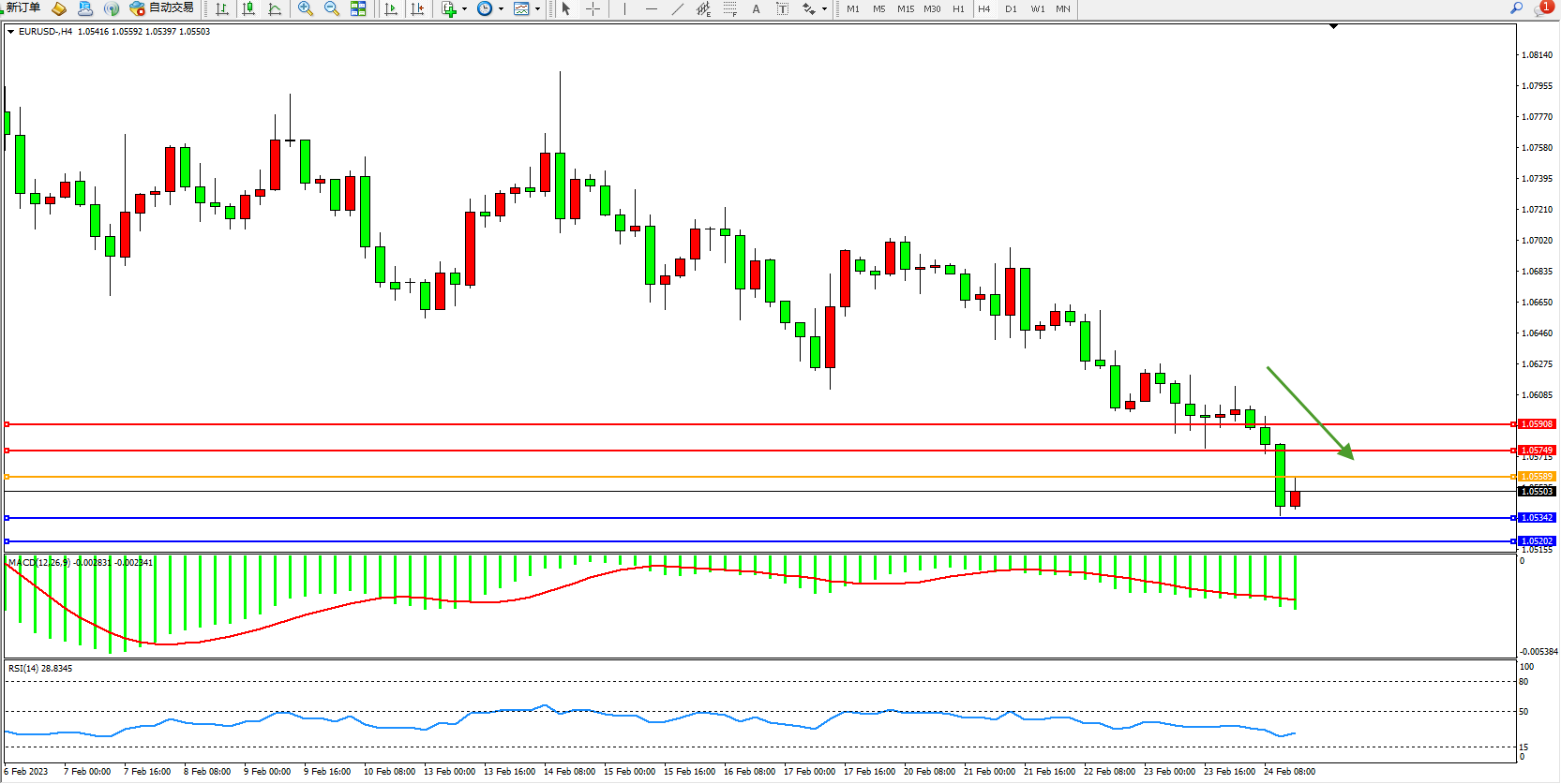 交易策略:1.05589下方看跌,目标1.05342、1.05202