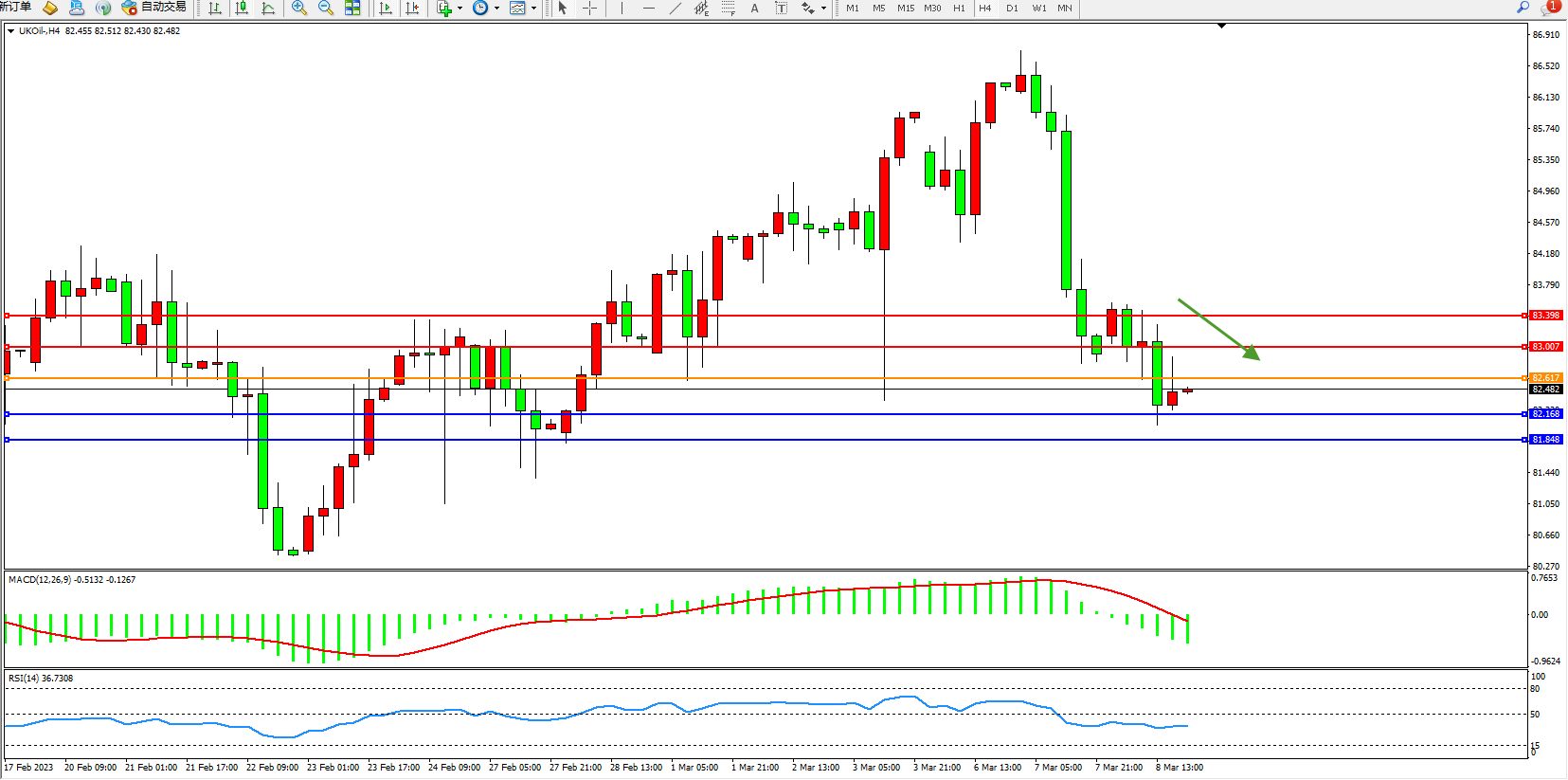 交易策略:82.617下方看跌,目标82.168  81.848