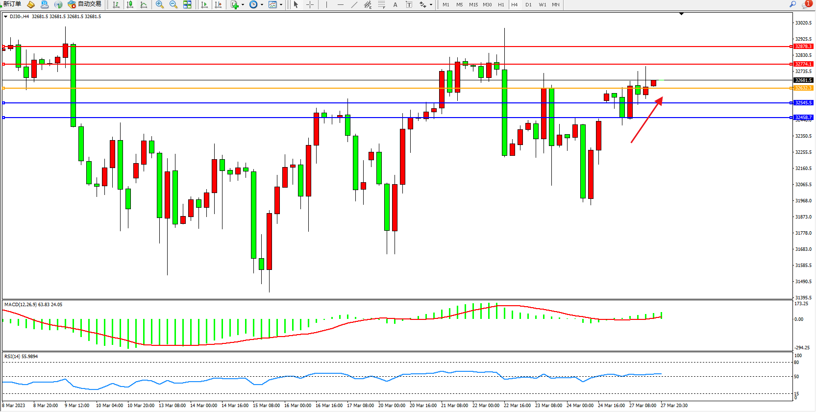 交易策略:32632上方看涨,目标32774 32878