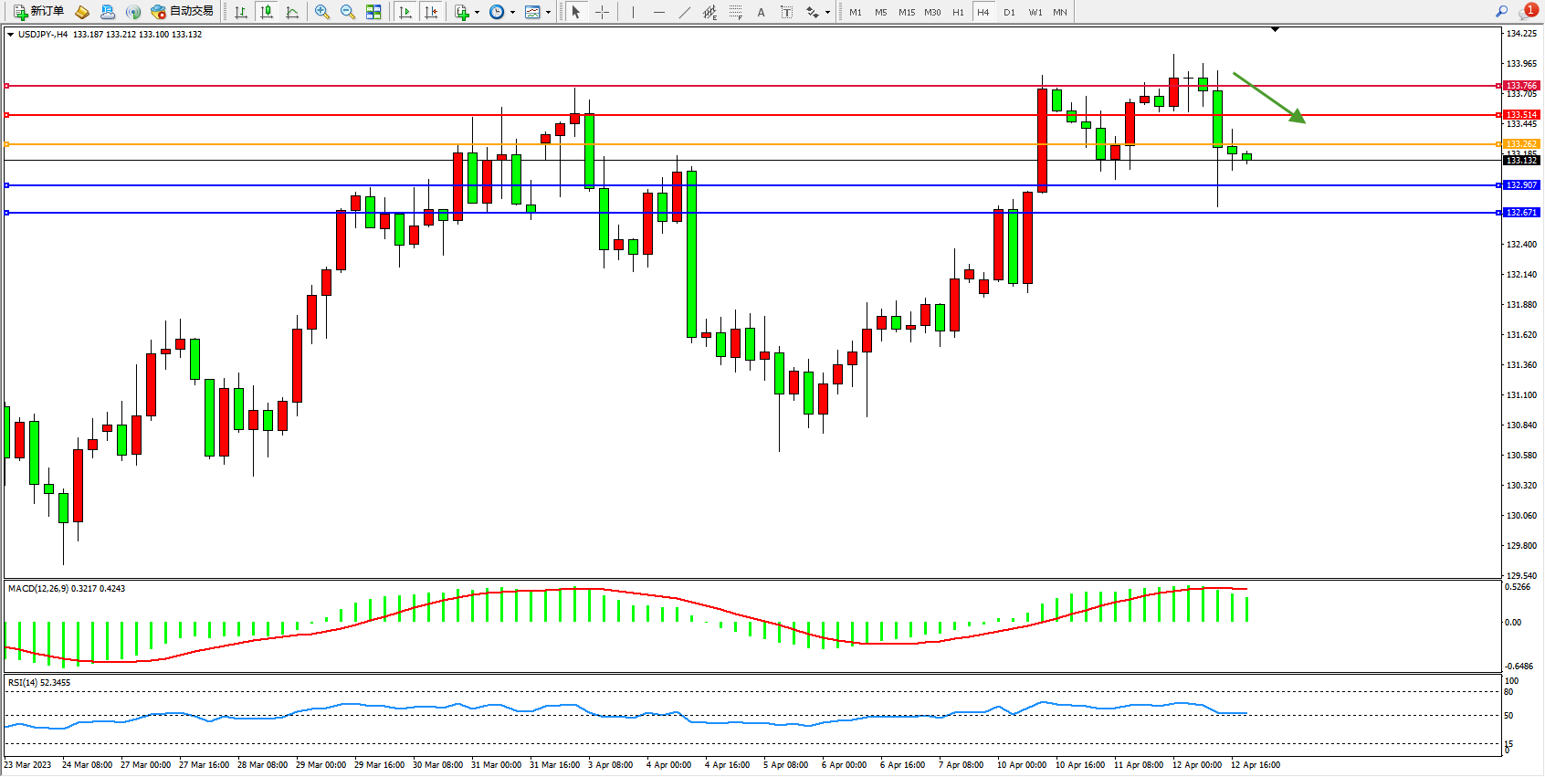 阻力位:133.514  133.766