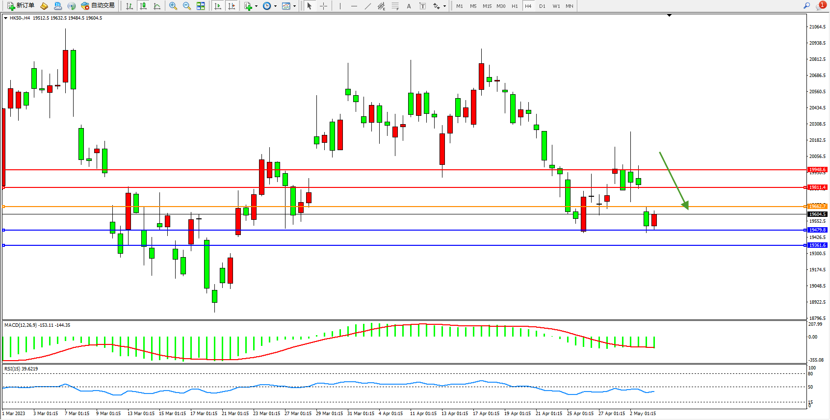 恒指HK50 4小时图